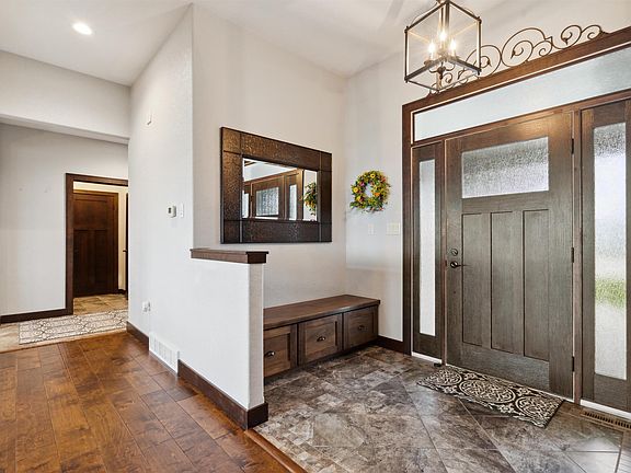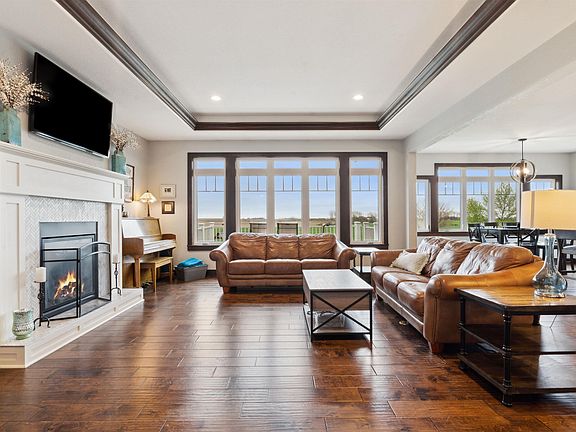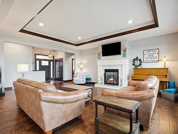 No detail was missed in this custom-built four bedroom, three and a half bath single story. The main floor features a beautiful eat-in kitchen with island seating, a gas fireplace, laundry and a half bath, along with an office, guest bedroom and full hall bath, and a master suite with tiled shower and walk-in closet. The walkout lower level is finished with a family room, a den, two bedrooms, a full bath, and a rec area. In addition to a three-stall heated garage, the exterior offers a composite deck, beautiful patio, play area and a poured basketball court, with fantastic views.