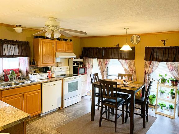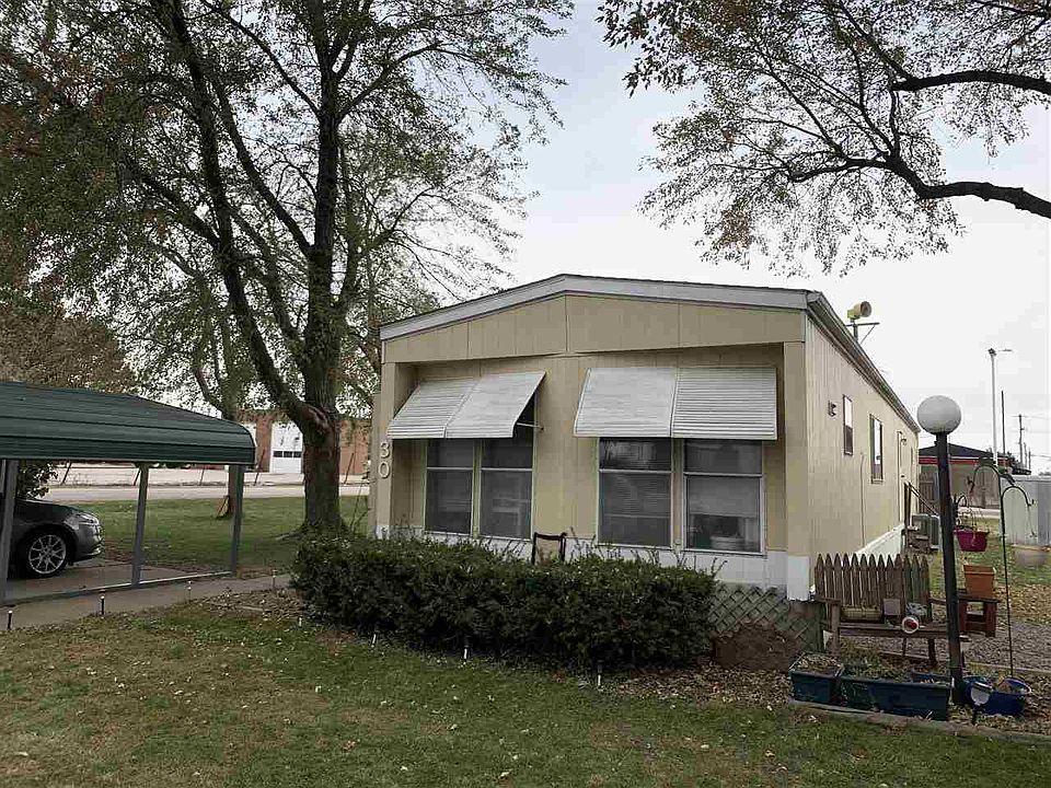 Nicely redone 2 bedroom, 1 1/2 bath mobile home with granite eating bar in eat-in kitchen with new flooring, newer roof, gas fireplace and carport. Has 2 sheds. Rent is $263 per month, includes water, sewer and garbage. Well insulated. This is a 1978 14x70 Bonneville Mobile home at East Gate Plaza. Roof is 1 year old. Furnace & A/C is 3 years old. Kitchen remodeled 3 years ago. Square footage and info is deemed reliable but not guaranteed. All measurements are approximate.
