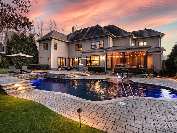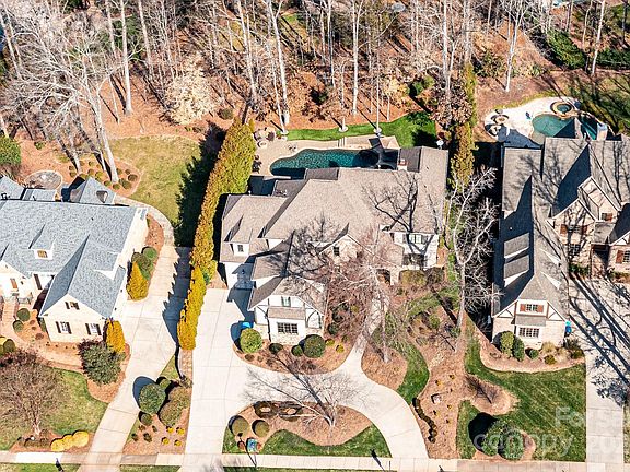 Nestled in a coveted location in Matthews on almost a half acre with a pool! This luxurious & functional custom home w/ heavy millwork, 10 ft. ceilings, plantation shutters, & wood floors boasts 3 separate living spaces on the main plus a screened porch. The kitchen w/ a gorgeous vent hood, gas range, apron sink, bev. fridge, island w/ prep sink & lovely dining area opens to a great room w/ coffered ceiling & floor-to-ceiling stone fireplace, while a stunning drop zone & home office provide ideal spaces for organization. The upper floor features a primary suite w/ dual WI closets, soaking tub & sep. shower plus two bedrooms w/ a Jack n Jill bath, a bedroom w/ en suite bath, a flex room, a bonus/5th bed. w/ a full bath, gym space, walk-in attic & custom closets. A terrace w/ a built-in grill, a built-in fire pit area, a hot tub & an 8 ft. deep PebbleTec saltwater pool w/ waterfall offer an outdoor oasis in the fenced yard! Circular drive, 3 car garage & zoned for sought-after schools!