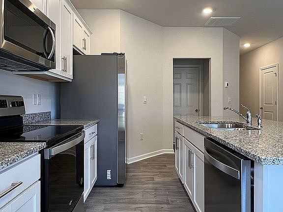 Like new 2-story townhouse (end-unit) conveniently located near highway for quick access to wherever you need to go. 3 bedrooms, 2 full bathrooms and laundry upstairs. Washer & dryer included. Master bedroom has vaulted ceiling and walk-in closet. Master bathroom has dual sinks and 2 linen closets for extra storage. Downstairs has open concept living room, dining and kitchen, plus a half bathroom. Stainless steel appliances and granite countertops. Blinds throughout. Home is energy efficient and has pull down attic access for additional storage.