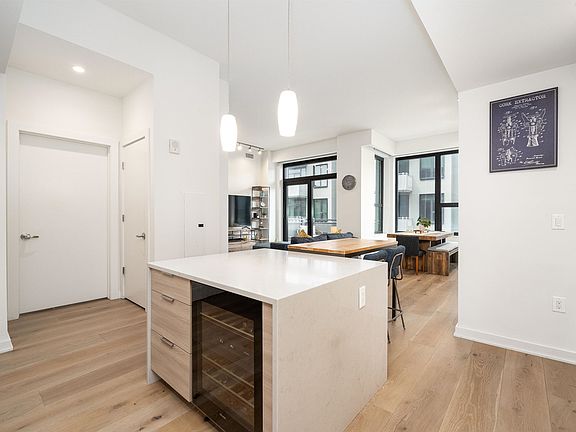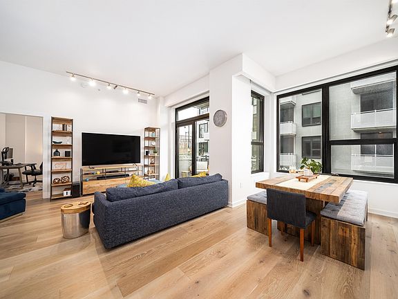Stunning 2 bedroom / 2 bathroom loft style home with parking, situated in Hoboken’s desirable North End. Built in 2019, this LEED Platinum certified ground up new construction building by Bijou Properties offers an incredibly unique living experience with no expense spared. From the moment you enter Via Lofts, you know you’re in a very special building. The industrial feel of the lobby adorned with luxury finishes harkens back to Hoboken’s industrial past while adding a contemporary aesthetic. The community features a fully equipped fitness center, gorgeous, landscaped community courtyard with outdoor grilling and dining areas, bike storage and private dedicated storage units. One of just two homes per floor, serenity and privacy is guaranteed. The kitchen has been thoughtfully designed with custom Italian cabinetry, state-of-the-art Miele appliance package, Caesarstone countertops with waterfall island and wine fridge. Living/dining room is perfect for entertaining and offers direct access to a private balcony. Primary suite is generous in size with a massive walk-in closet and en-suite luxurious bathroom. Additional highlights include 11’ ceilings, nearly 1,400s/f of living space, over-sized west facing windows, central A/C, in-unit laundry, wide-plank flooring, custom lighting throughout and an abundance of closet storage. Situated on the North End of Hoboken, you’ll find easy access to the new Northwest Resiliency Park, NY Waterways Ferry, NJ Transit 126 bus to Port Authority, shopping, restaurants, the Hudson River waterfront promenade and so much more.