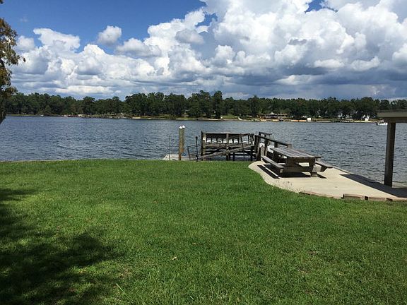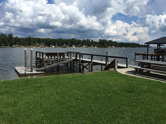REDUCED PRICE!!Deeded Water front lot on BIG water, sandy beach,pier w/floating dock,boat house converted to party/outside living area,master bedroom downstairs,HUGE loft upstairs w/two queen beds and plenty of space.Double vanities in bathroom,utility room,kitchen w/island,gas log fireplace,gorgeous cypress siding inside,septic tank for a 4 bedroom house,home is offset on lot for future addition