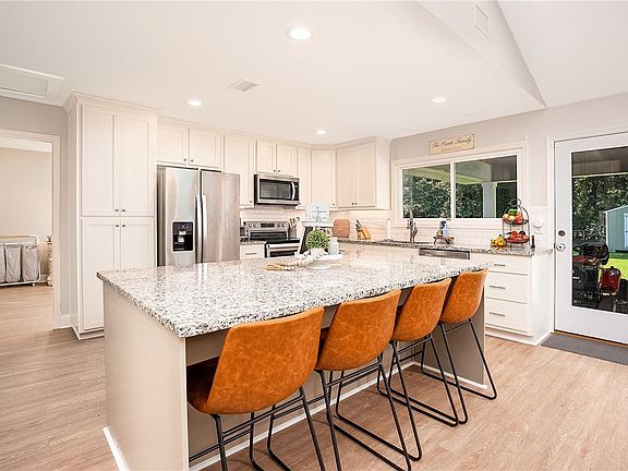 Fresh paintNew flooringLarge islandWood-burning fireplaceCharming eat-in breakfast areaCozy ambianceModern mid-century feel