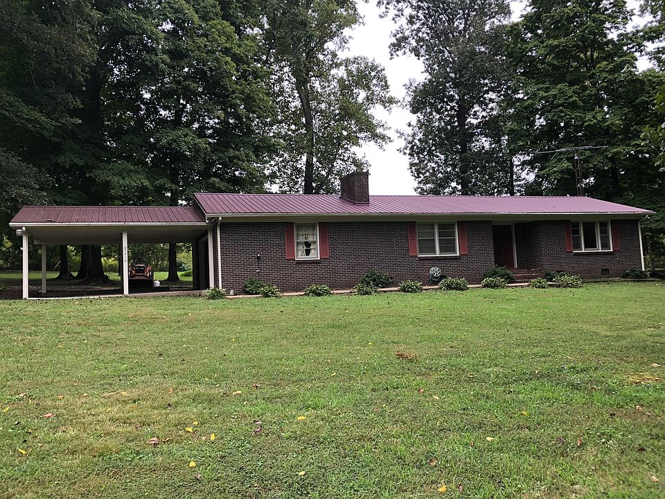 Brick 2 BR with 1 full and one 3/4 bath on beautiful 2 acre corner lot with mature trees. Easy access to I65 (4 miles) Home has dining room, kitchen/den, foyer, and living room (potential 3rd bedroom). Access to the covered patio is available from the spacious master bedroom and the dining room. Perfect wildlife viewing opportunities as deer and turkey are common visitors. Paved drive, concrete 2 car attached carport and additional 1 car detached garage.