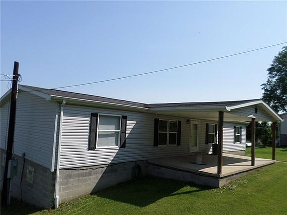 FAMILY SIZED FRONT COVERED PORCH/PATIO - Picnic perfect patio! This 3 bedroom, 2 full bath(s) home has all you need - ALL ON ONE LEVEL! Extremely well maintained and clean manufactured 11 year old ranch home on the edge of Waynesburg close to schools, shopping and Interstate 79. Beautiful open floor plan in this home!! Features a spacious living room with new laminate wood flooring, open family room with new laminate flooring, absolutely HUGE eat-in kitchen with tons of kitchen cabinet space and counter top space. Master bedroom has a full bath and a walk-in closet. Lots of closet space and storage area. Laundry room/mud room on main floor. Spacious covered front porch and rear deck. Partial walk out basement and partial block crawlspace - home is on a full perimeter concrete block foundation. Move-in ready!