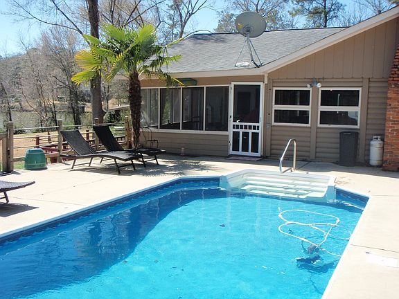**DEEDED WATERFRONT LAKE HOUSE ON LAKE OLIVER** MILLION DOLLAR VIEWS...Minutes from Shopping, Grocery, Gas, Restaurants, Columbus, Etc. RUSTIC CABIN/RANCH STYLE WATERFRONT LAKE HOUSE WITH PORCHES, DECKS, PATIOS, LOTS OF WINDOWS, IN GROUND SALT WATER POOL OVERLOOKING LAKE, STACKED STONE FIRPLACE, & MORE. Less than 2 miles from Publix Want a place like no other?? This extremely unique Lake Oliver waterfront Home has many amenities and THE BEST VIEW ON THE ENTIRE LAKE. A bonus room offers a 3rd bedroom or bar area for enjoying your favorite drinks in the heat of the summer with easy access to the saltwater pool. On the holidays enjoy the views of the firework display while looking at the gorgeous lights at night located on the Lake Oliver Dam. This rustic log cabin style home has been recently updated/remodeled & ready!
