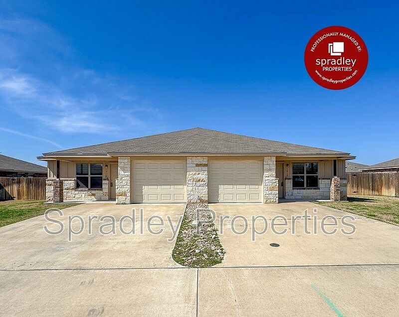 Stunning 3-bedroom, 2 bath, 1 car garage duplex. Features include: stained concrete floors, granite counter tops, kitchen appliances, washer/dryer connections, and fenced backyard with sprinkler system. Lawncare is included. Small pets under 25 lbs welcome! Conveniently located less than 2 miles from Academy schools and approximately 7.5 miles from I-35 in Belton. All leases are required to participate in a Resident Benefit Package at a monthly cost up to $30.00. Renter's Insurance is required prior to obtaining keys. *Fees for Resident Benefit Package are not included in the rent amount shown.* Availability dates are estimates and subject to change without notice. Rental prices may change without notice unless applicants have signed a lease agreement. Pictures taken may be prior to current resident. Driving directions: Head east on NW H K Dodgen Loop and exit to Hwy 95 South. Continue on Hwy 95 for 5 miles and turn right onto Main St. Head west on Main St. for approximately 2 miles and River Run is on the left hand side.
