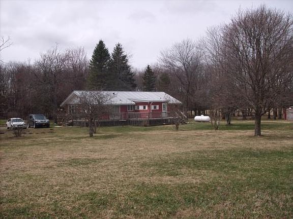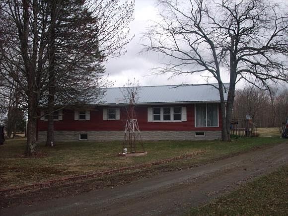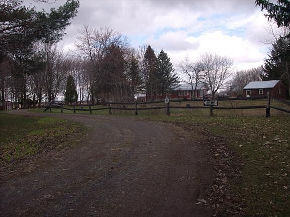 Like driving into a park,this place is beautiful!! Lovely home tucked away in the woods!3 bedroom,2 bath ranch on 50 acres! Perfect for horses or livestock! Gorgeous yard w/ 2 storage sheds & detached 3 bay garage! Tons of flowerbeds filled with perennials! Private driveway winds by a lovely pond!Wrap around deck to relax & enjoy the peaceful evenings! Massive living room w/ lots of windows for natural light.Master bedroom w/ bath & bathroom which opens into second bathroom.Bedrooms could use new flooring.Huge basement perfect for storage or additional living space.New roof on house & garage