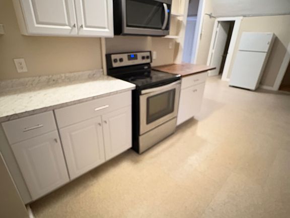 This is a newly renovated large 2 bed 1 bath apartment on a 3rd floor. Lots of closet space. It is all electric. Month to month lease.