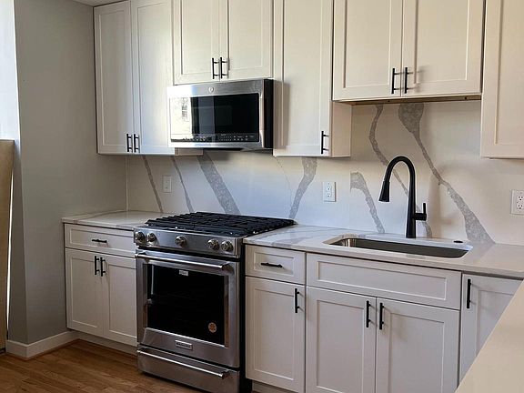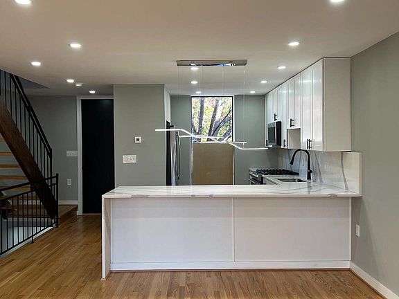 Spectacular renovation. Everything is new and high end. Gourmet kitchen with Quartz countertops, backsplash and waterfall along with high end stainless appliances. Custom hardwoods throughout the main 2 levels with open modern staircase. Custom recessed lighting throughout. 2 full upgraded custom baths. Master bath with double vanity. Fully finished basement with tiled rec room, full bath and laundry with complete full size high end units. This home has been completely gut renovated with among others all new electrical, all new plumbing and a new roof. Two assigned parking spaces in front and private courtyard in the rear.
