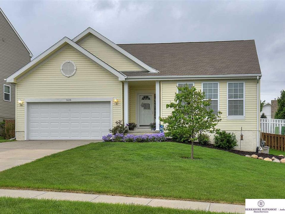 Welcome to this wonderful & immaculate ranch home with great curb-appeal! Walk in to an open entry, soaring ceilings and spacious floor plan. The living room opens to the kitchen, creating a great gathering area that can extend to the large deck. Kitchen has loads of cabinets, wood floors, center island, and all appliances are included. From the living room you will love the large MBR which includes a walk-in closet and full bath. And wait...there's more!! The lower level provides casual entertaining with game-days and family fun! Included is a 3/4 bath and egress window. Spacious storage area includes utility sink and sump pump. Main floor laundry includes a 2yr old high efficiency washer and dryer. Maintenance-free siding and fenced yard; popular Elkhorn Schools. Come see this special home for yourself!!