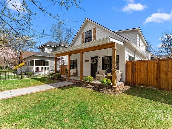 Built in the early 1900s and beautifully renovated, this residence highlights exceptional craftsmanship. Inside, you'll find a gourmet kitchen with high-end stainless steel appliances, including a 36” Bertazzoni range. The elegant dining and living rooms blend classic charm with modern touches, while a built-in desk offers a dedicated workspace. Enjoy entertaining with a stylish mini-bar and a convenient mudroom featuring a dog shower. Outside, an inviting patio with an outdoor fire pit is perfect for relaxing evenings, and the charming front porch is ideal for morning coffee. This home also includes a fully approved ADU above the garage, perfect for rental income or hosting guests. Located in the highly desirable North End neighborhood of Boise, it's within walking distance to schools, parks, and the beautiful foothills. Don't miss the chance to make this exceptional property your own!