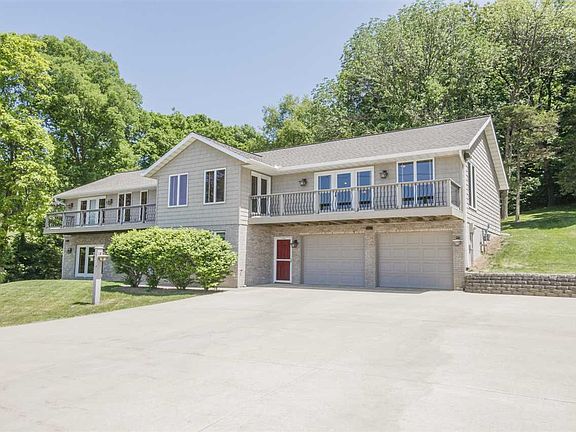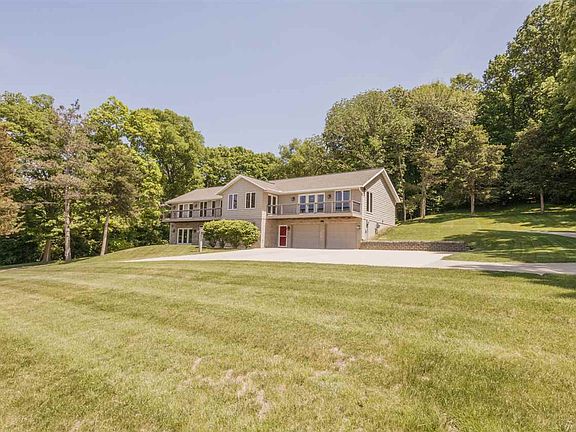 Spectacular 4 bdrm, 3 ba raised ranch nested away on 8+/- acres of wooded bluff w/breathtaking views of the river/city skyline. Originally built in 1993 & then an expansion and complete remodel done in 2008, features include; rich cherry & maple finishes, spacious wide open rooms, loads of windows to enjoy the views, fully applianced kitchen w/quartz tops, luxurious master ste w/cathedral ceilings-gas log FP-huge bath w/double bowl sinks-WIC-whirlpool tub, full finished LL offers additional 2 bdrms-bath-FR. There is a 1,000 sq.ft. heated/cooled outbuilding. Truly one of a kind setting/home!!