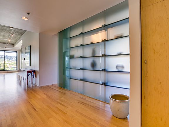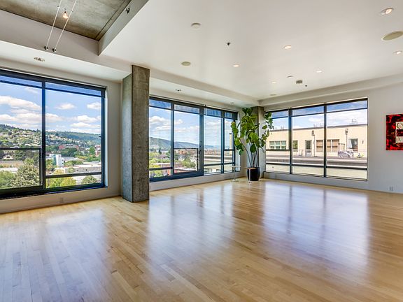 Modern and architecturally significant, this incredible west-facing corner unit at the Edge features expansive views of the City and the West Hills. Located in the heart of the Pearl District, the best of what Portland offers awaits close at hand. Entering the building, the well-lit lobby greets residents and visitors with a sophisticated mood. Crossing the threshold where rich wood floors lie underfoot, take in the array of custom features, minimalist elegance and tasteful finishes throughout. The open and sizable kitchen features a double island, stainless steel counter tops and top of the line Miele appliances. In the spacious living room, impressive oversized windows illuminate the room while offering majestic views of Portland, creating a refreshing, open ambiance. Additional features include a serene master suite with full bath and walk-in closet, second bedroom with built-ins, dedicated work space/den with custom built-ins, elegant bathrooms and a sizable laundry room with ample space and storage. This exceptional loft is a perfect blend of effortless style and organic comfort. Custom Improvements Include: -Recessed down lights throughout with Lutron Maestro Smart -Dimmers as well as recessed ceiling speakers. Master Bedroom: One solid wall in master bedroom replaced with acid etched glass panels and sliding door to allow natural light to reach entry hall. The sliding door allows quick access to the front door and laundry room. -Rakks adjustable pole shelving system with mahogany shelves 2nd Bedroom Addition: Mahogany sliding door with frosted glass, built in mahogany Murphy bed & closet/cabinet, clerestory glass relite for added natural light, ceiling fan with remote, sprinklers and HVAC ducting. Guest Bath: -Oversized Birch vanity (to match the existing doors) and mounted mirror, Kohler under-mount sink and quartz countertop with waterfall edge. Kitchen: -Second island offers additional counter space and storage & built-in mahogany cabinet for storage. Living Room: - Mahogany built-ins/media center and additional storage. Drawers feature integrated lighting. Oversize white lacquer sliding barn doors with custom KrownLab sliding barn door hardware. Den/Workspace: -Custom built-in desk/workspace & overhead storage cabinets that extend wall-wall as well as radiant cove heater & window treatments. Laundry Room: -Wall length/oversized sliding door storage closet