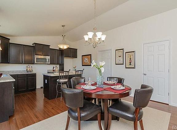 New Construction by T. R Hughes Homes! BRAND NEW, 3 bdr, 2 bath ranch in the fantastic Hampton Woods community. With just under 1,600 sq ft of living space, this home has today's most desirable features: Vltd Grt Rm/Kit/Brkfst Rm, FP, laminate wood floors in the Entry/Kit/Brkfst Rm, staggered height 42" cabinets w/crown, st steel Whirlpool appl, R 38 ceiling insulation, ceiling fans in Grt Rm and Mstr Bdrm & more. The Mstr Suite has a coffered clg, dbl bowl raised hght vanities, 5' shower & a walk in closet. The low maint ext has a partial brick front, oversized 3 car garage, coach lights, vinyl siding, enc fascia/soffits, 30 year architectural shingles & front yard sod. There is a bath rough in for an easy future LL finish. Wonderful neighborhood w/center playground & sports court just steps away. Easy access to schools, shopping &dining on nearby Hwy K & Main St in O'Fallon. Fantastic home, outstanding price, move in ready…WOW!