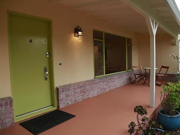 Classic Mid Century Modern Home; 3 Bedrooms, 2.5 Bathrooms, private and relaxed atmosphere. Wonderful neighborhood. Updated kitchen with stainless steel appliances. Mediterranean-inspired outdoor spaces featuring native plants, organic kitchen herbs and veggie garden and fruit trees - very laid back Sunset Magazine/ Napa Valley vibe. Unbeatable Location; This original ranch house is historic to our area. Set back off the street; it has a private, enclosed yard that that includes apricot, fig, peach, nectarines, orange, lemon, persimmon, apple and pomegranate trees. Plenty of off street parking. No smoking. Small pet allowed. Gardener included. This classic modern, comfortable Mid-Century Ranch House is situated within walking distance of Oak Avenue Elementary School and Mountain View High School and is one mile from nearby shopping, restaurants, coffee shops near El Camino Hospital and the YMCA.