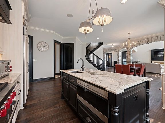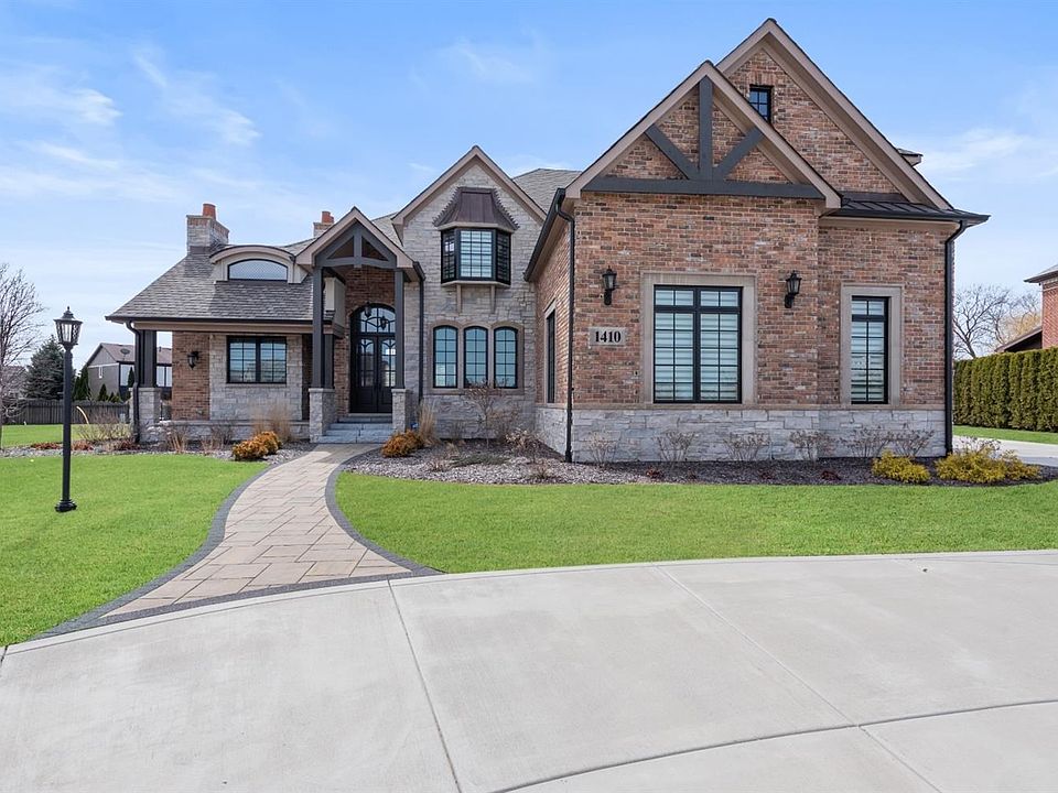 Immerse yourself in the luxury of a Custom-built home on the largest lot in Munster's exclusive, gated Park West subdivision. Character abounds from the moment you pull up in the circular drive and notice the re-claimed Michigan street paver brick trimmed with Indiana Limestone. Inside get swept away by flagstone trimmed Archways which create separation yet maintain open concept on Main floor featuring Formal dining room, pwdr room, 2 story family rm with Poplar trimmed wall of windows and Limestone FP, large Bkfst nook, gourmet kitchen with Wolfe appliances, Guest bdrm with full bath, Mud rm, and Library with floor to ceiling Limestone FP & built ins. Spectacular Master Suite Up with FP separating sleeping/sitting areas and bath fit for Royalty. 2 beds Jack and Jill style and 1 Huge bdrm with another full bath up. Unbelievable lower level for entertaining and staying fit. Almost an acre of property will make you feel you've escaped to a luxury hideaway.