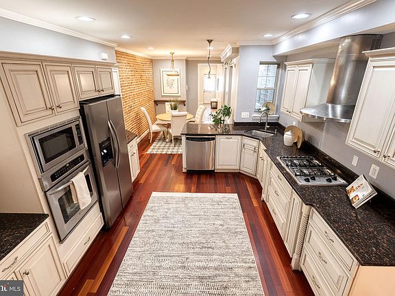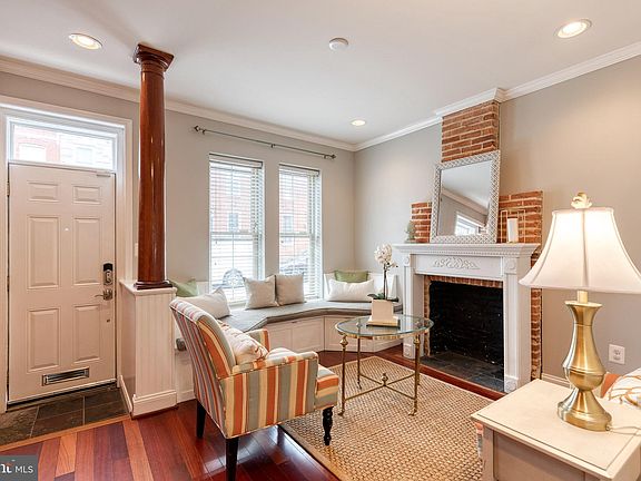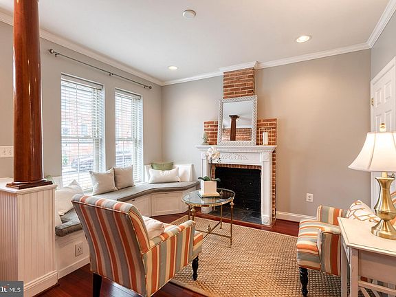 Gorgeous 3 bedroom, 2 full bathroom, 2 half bathroom, and over 2200 finished square foot row home on three above grade levels with a parking pad and an incredible two-tiered roof deck. The classic Federal style home has a beautifully designed main level. The front living room has a custom-built window seat and centers around a charming decorative fireplace. The elegant French country style kitchen with granite countertops and stainless-steel appliances blends beautifully with the surrounding exposed brick walls and hardwood floors. The layout flows to a large dining area off the kitchen, a powder room, and a rear flex room which could be used as an office, mudroom, or additional sitting area. The second level is accessed from the handsome original staircase and has a spacious rear primary suite with a walk-in closet and a luxurious bathroom with a comfortable walk-in shower. The second floor’s front bedroom has tall ceilings accented by the floor to ceiling brick wall. A full hallway bathroom and a laundry area complete the second level. The third level boasts the third bedroom, a half bathroom, and a huge living area with a wet bar and access to the roof decks. The upper-level roof deck is the envy of the neighborhood. The enormous space has unbelievable views of the city skyline and fireworks on the Fourth and New Year’s. Recent improvements include a new roof and roof deck in 2023. The expansive and dry unfinished basement gives plenty of easy storage and includes two work bench spaces. Located on a quiet and highly desirable street, there is immediate access to I-95, BWI, I-83, and Penn Station and an easy walk to the shops of Federal Hill, multiple serene parks, and the Baltimore Promenade. Schedule your tour today!