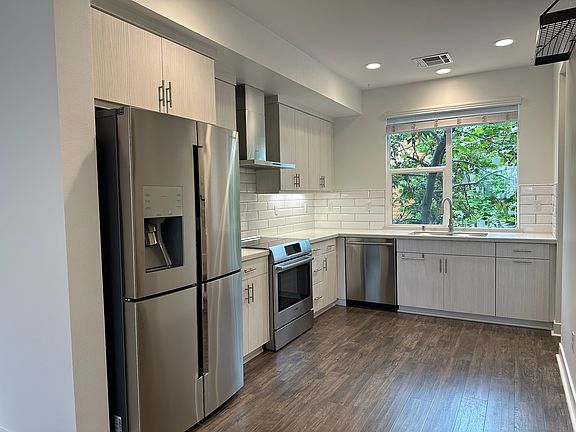 This trilevel 1459 sqft townhouse built in 2017 boasts a spacious open floorplan with natural light, quartz countertops, laminate flooring, and stainless steel appliances. Two bedrooms, each featuring its own ensuite bathroom and the primary with a walk-in closet provides privacy and comfort. The flex room offers versatility for your lifestyle needs, whether it's a home office or a cozy den. Enjoy the convenience of a side-by-side two-car garage. Solar panels and an EV charger. Central heating and cooling ensure year-round comfort, while the in-unit washer/dryer adds practicality to your daily routine. Located in West Oakland this townhouse is located only minutes away from freeway access and the West Oakland BART station just 0.8 miles away making commuting stress-free. Explore the vibrant neighborhood with the Prescott farmers market, night market and the Oakland ballers. Bay Street shopping, Jack London, and Lake Merritt are a short drive away. Let deposit.