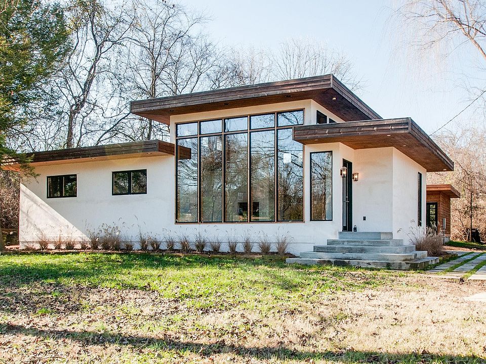 Mid Century Modern Renovation inspired by the Frank Lloyd Wright Waterfall house. Nestled in the middle of artistic East Nashville and within walking distance of the Shelby Bottoms Greenway. Floor to Ceiling windows, unique & custom finishes, with a working fireplace make this home a special find. Detached apartment with full bathroom and working kitchen brings the total to 2126 sq ft.