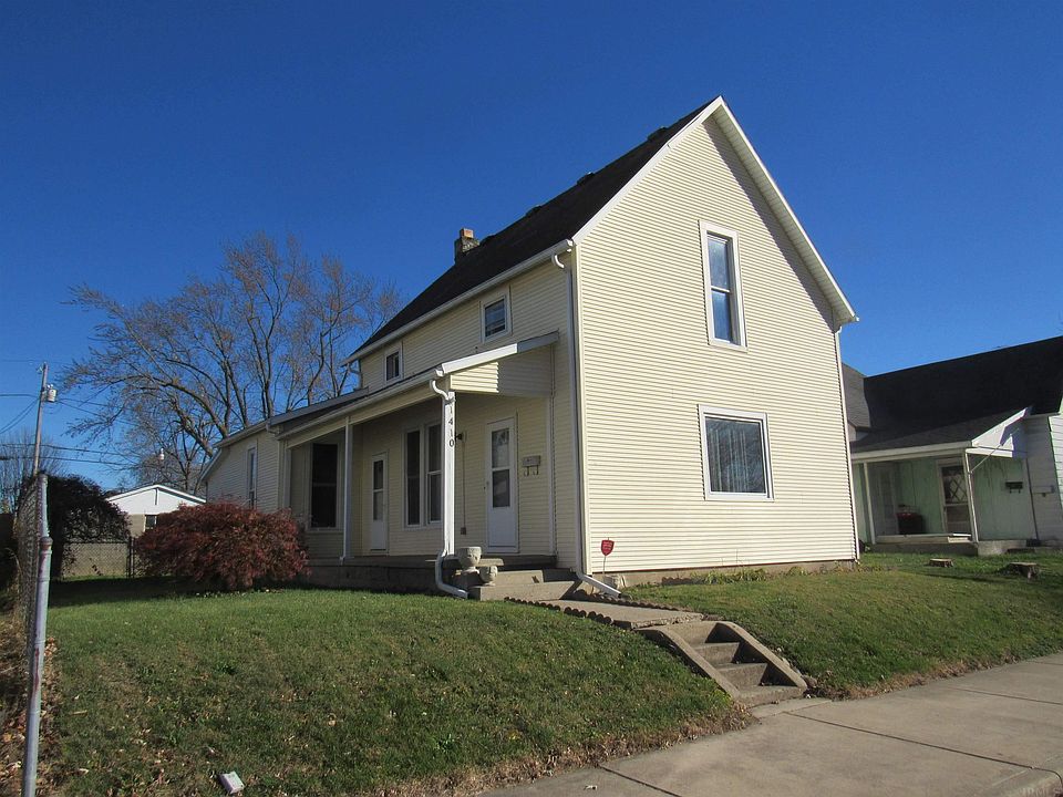 LOOKING FOR SOMETHING YOU CAN MOVE RIGHT IN - THIS IS IT!! This vinyl clad home offers 1 BR on the main level with 2 BR's up. Home has been freshly painted, laminate flooring throughout with 3 BR's offering carpet. Eat in kitchen has nice cabinetry and newer refrigerator and range. Utility room has washer and dryer that will be remaining. Living Room has fireplace but owner has never used. Basement has access in the utility area. Nice back yard that has patio area along with a detached garage.