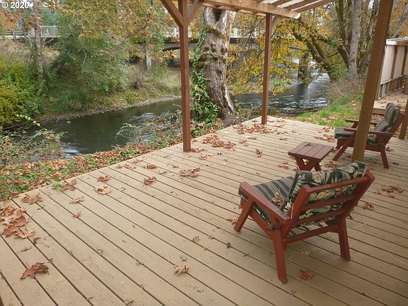 Live on 120 ft of RIVER FRONTAGE. Quality remodel w attention to detail! Solid hickory floors, porcelain tile floors in kitchen/bath. All bedrooms have river view, large master suite w sliding door to covered deck. Kitchen features open concept with vaulted ceiling, skylight. Hickory cabinets with soft close doors n drawers. Walk in pantry, granite counters with under mount sink, new appliances with 5 burner gas range. Garden area, long RV driveway, large garage w upper loft storage n bonus room