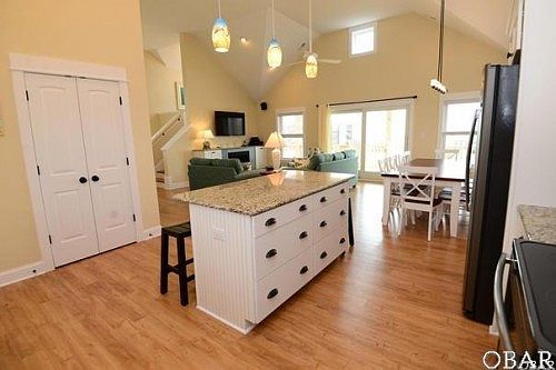 Try to find a more well built home, with appointed details, professional decor and upgrade finishes like this classic 'Old Nags Head Style' design. The minute you walk in the door you'll be able to feel and see the custom design and quality construction by Kevin Pain. No expense has been spared with attention to detail; the builder's intention was to put more money in the construction and design to save on long term maintenance and monthly utility bills. This semi oceanfront, not only has panoramic ocean views, but wood cedar shakes,a green roof with 30 year architectural shingles,5 bedrooms (4 are masters), elevator, separate den, game room w/pool table, wet bar, full size refrigerator and microwave, private swimming pool, and hot tub. The kitchen looks like it's right off the cover of Coastal Living Magazine, with granite countertops, stainless steel appliances, beautiful custom white beadboard cabinets by Island Woodcrafts, and glass pendant bar lighting with coastal flair. One of the nicest additions to this home was making it handicap friendly, helping generate more yearly rental income. The home should do $70,000 this year and with $65,000 YTD and 6 weeks booked in 2016. The seller/builder has been a long time resident of OBX and selected materials that would provide an as maintenance-free environment as possible. Some of these quality features include; windows with impact resistant glass,the exterior window trim is a top dollar synthetic material which has an extended