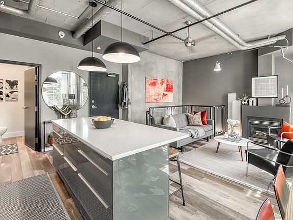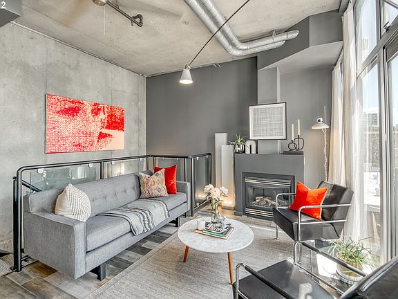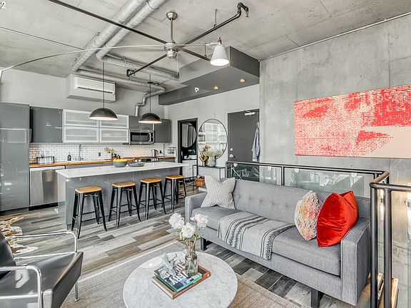 Urban Chic Loft with gorgeous city views & custom owner improvements! Soaring floor-to-ceiling SW-facing windows create drama & light. Remodeled gourmet kitchen w/ large island opens to elegant living & dining areas. Spacious lower-level bedroom ste has great nook for office, large walk-through closet w/ ample storage, & laundry. Wall a/c units on both floors! Great downtown location on trolley line, close to cultural district, PSU, Pearl & more. Rented parking provided by Seller for 1 year!
