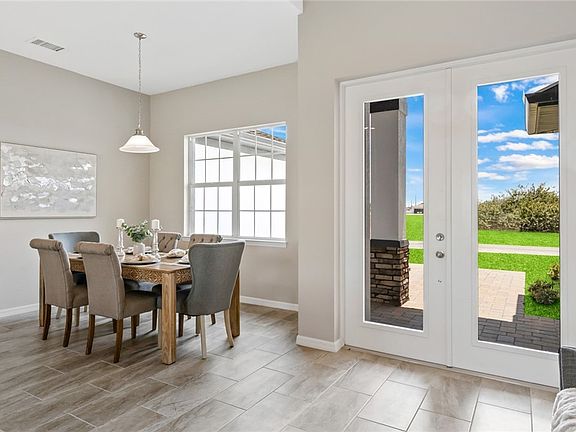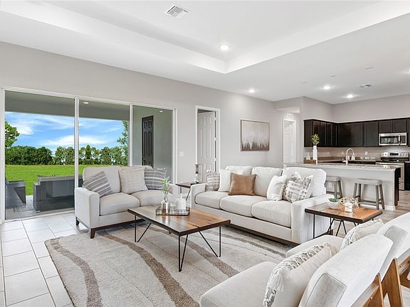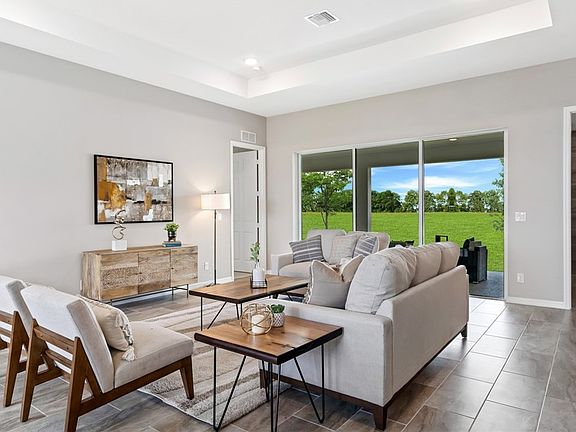 NEW CONSTRUCTION WITH WARRANTY! The Boca Grande delivers an open floor plan with 2,321 sq ft of living space that features an expansive living space ideal for gathering and entertaining. The kitchen offers a walk-in pantry and a freestanding island overlooking the dining area and Great Room with triple sliding glass doors to the lanai. Designed for privacy, this split floor plan boasts a primary suite with two walk-in closets and a spacious bathroom, complete with a dual-sink vanity, private water closet, linen closet, a large tiled shower, and separate soaking tub. On the other side of the home, two guest bedrooms share access to a hall bathroom. The third bedroom includes a private bathroom that can also be accessed from the spacious lanai. The home boasts glass-light double front doors, tray ceilings in the entry, Great Room, and primary suite, 8ft doors throughout the home, granite counters in the kitchen and bathrooms, designer cabinetry with 42”H wall cabinets in the kitchen, stainless steel appliances, hurricane-impact windows and doors, tile throughout main living areas, 3-car garage, paver driveway, and more!