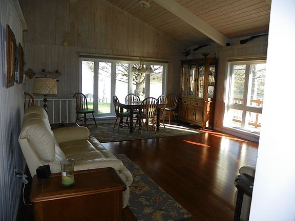 LAKE FRONT PROPERTY AT LAKE WILDWOOD located in Varna Illinois Lake front 2 bedroom, 2 bath home with 120 feet of lakefront. Hardwood floors throughout cathedral ceilings in living room ,dinning room and kitchen, updated kitchen and bathrooms with a Jacuzzi tub. Screened room off master bedroom. Walk-out lower level with bonus room with gas fireplace, laundry room, work shop, bathroom and storeroom. Attached 2 ½ car garage and a 10x12 shed. Central air and whole house fan, windows are thermal paned with E-glass. Permanent dock and home has beautiful views of the lake the dining room, living room, master bedroom and screened in porch off master bedroom. Pontoon boat and paddle boat are negotiable. Community has a guarded gate, 2 beaches, pool, tennis courts, club house and concession stand. Home is currently for sale with an asking price of $299,900. Call to make an appointment for a showing. Thank You. 1410 Shoreline drive, Varna Illinois. (630)744-1984