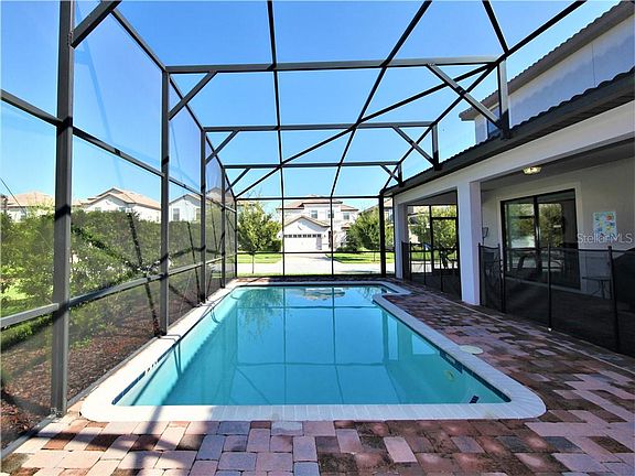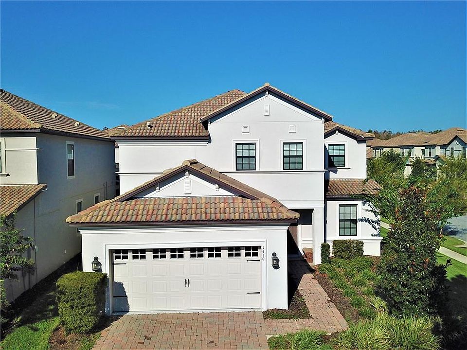 This 5 bed and 4.5 bath professionally furnished pool home is located on a corner lot with a west facing pool, you will be able to enjoy long evenings of sunshine on your pool deck! The kitchen features stainless steel appliances, granite counters, and a breakfast bar complete with stools. Both master bathrooms boast tile showers with glass doors and granite. The downstairs master suite leads right out to the expansive pool patio, which has ample space for lounging, and room to add a spa if desired! Two twin Mickey-inspired bedrooms upstairs share a similarly themed complete bathroom. The location is perfect for vacations, being less than 15 minutes to the gates of Walt Disney World. There are also two golf courses right on property! Residents and guests of The Retreat at Champions Gate (which is where this home is located) have access to the multi million dollar Oasis Club facility, which features resort-style, swimming pool with a lazy river and splash pad, a fully-equipped fitness center, an arcade, a tiki bar, a theater room, a restaurant and a bar! The Oasis Club is only a six minute walk from this home- you don't even have to drive to get there! This property is currently in rental program for short term rentals, but you could make this your permanent home as well!