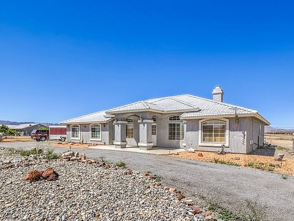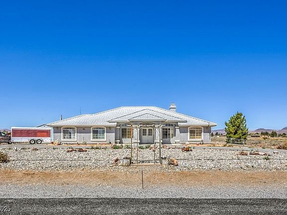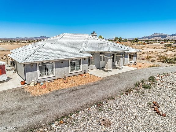 Located at 1410 Tiptop Trail in Pahrump, this 4-bedroom, 3-bathroom home offers 2,177 sq ft of living space on a 1.1-acre lot. The property includes a 2-car garage, fully fenced backyard with RV parking, storage shed, and a covered well house. Situated in a neighborhood of custom homes, this home provides space, functionality, and room for your toys.