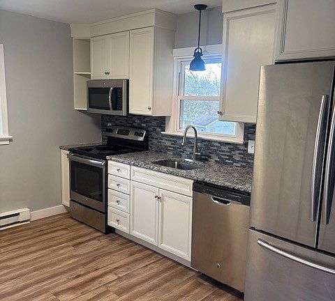 2 bedroom/1 bath single family newly renovated home in Strasburg. Detached garage, unfinished basement, electric baseboard heat, all appliances, granite, large back yard with stream. $1850, water and sewer are included. Must have satisfactory credit report (no lates or collections). Move in ready. One month security deposit and $50 application fee. Lease is for one year, then goes month to month. Resident pays for heat and trash removal. Water and sewer is included. Resident is responsible for lawn care and snow removal.