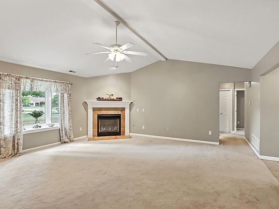 Welcome to this well maintained 3-bedroom, 2 full bath ranch style home, perfectly situated on a partially wooded corner lot. Enjoy the warmth and comfort of the large, bright living room featuring a cozy fireplace-ideal for relaxing or entertaining. Fresh paint throughout most of the home gives it a clean, updated feel and with all appliances staying-it makes this home truly move-in ready. Step outside to a spacious stamped concrete patio with a built-in firepit, perfect for cool evenings under the stars. A large front porch offers a peaceful spot to enjoy your morning coffee or greet neighbors. Additional highlights include a 2-car attached garage, a handy storage shed, and mature trees providing natural beauty and shade. Whether you're hosting gatherings or looking for a quiet retreat, this home offers the perfect blend of indoor comfort and outdoor enjoyment. This home checks all the boxes: comfort, charm, functionality and location. Schedule your private tour today!