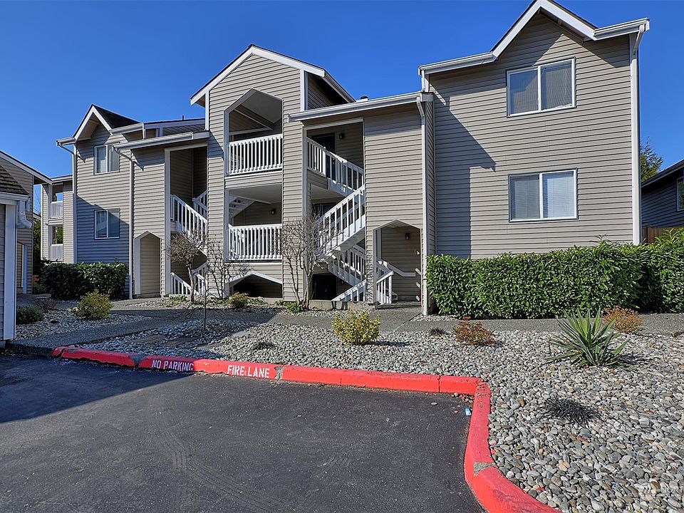 Welcome to your new home at Sunset at the Park with Private setting in rear of complex! This rarely available, top floor, move in ready condo features high ceilings, fireplace, large walk-in closet and an in-unit washer & dryer. Dishwasher, range and water heater are brand new! Granite countertops with plenty of cabinet storage. Side deck perfect for a bbq or checking out the sunsets. Low HOA dues! Located in close proximity to Paine Field airport, shopping, restaurants and Boeing. Has detached garage and plenty of guest parking. Fabulous rental alternative.
