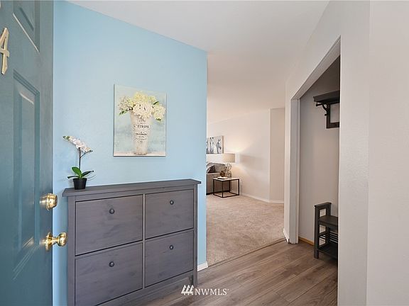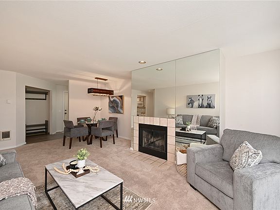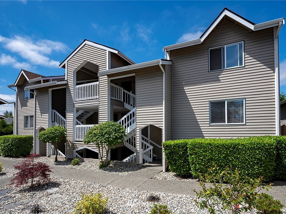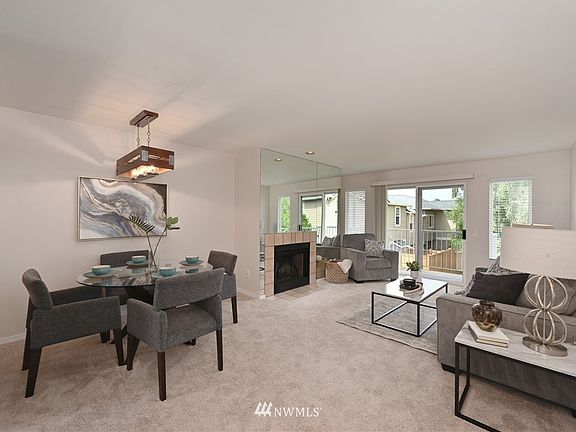 Nothing compares to this 2 bdrm/2 bth condo with garage and a fireplace. This sun filled home features new carpet and paint. Spacious bedrooms that can accommodate king size beds; a primary bedroom featuring a modern step-in shower, private water closet along with a walk in closet. Both bathrooms have been completely updated. Stackable front loading W/D and newer hot water tank add to the move in ready features of this low maintenance home. Homes at Sunrise at the Park are rare in availability. The community is well maintained with healthy reserves . West of Walter Hall Golf Course and Park. One assigned parking spot in addition to the 1 car garage. VA and FHA approved, quick access to Hwy 526 and Boeing as well as on the busline.