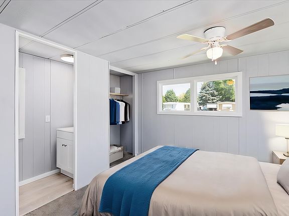 **OWNER WILL FINANCE @ 2.9% with 50% down. PLUS, 6 months FREE lot rent with an accepted offer by July 29. Additional Loan options from $5k down. Interest Rates vary from 2.9-12% depending on the down payment. This updated manufactured home is located in Karcher Mobile Home Park and it borders a community park. New Roof & Windows, New Modern Kitchen with new kitchen, a stylish butcher block countertop, a new dishwasher, and oven – ready for all your culinary adventures! New water heater, paint, floors, bathroom updates, newer HVAC, and front porch. Washer and dryer hookups and two sheds for ample storage space. Potential to fence in the yard. Situated right next to Karcher Mall for quick access to shopping and restaurants and the freeway on ramp.