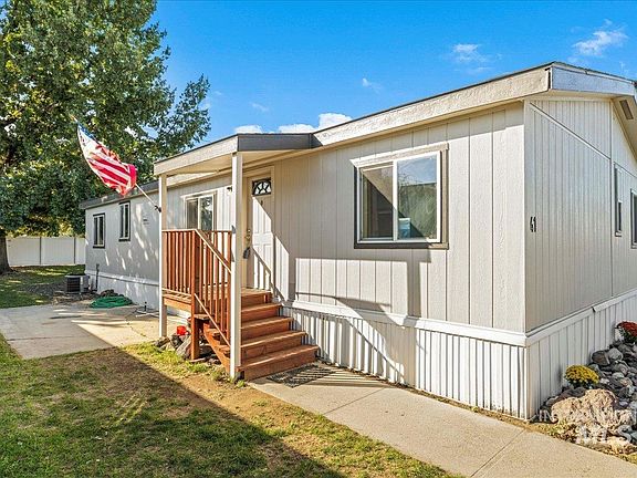 Welcome home to this beautifully updated double wide manufactured home that offers comfort w/ a split bedroom floorplan. This home is move-in ready and perfect for those seeking affordable living. The 3 bed | 2 bath home offers quality craftsmanship & meets the requirements for Northwest Energy Efficient Manufactured Home Program. Step inside to discover an open & inviting living space & fireplace w/ freshly painted interior/exterior, new LVP flooring, water heater, & AC unit. Retreat in your spacious master suite, complete w/ a walk-in closet and ensuite bathroom. Two additional bedrooms provide flexibility for guests, home office, or a growing family. Situated in a very convenient area close to schools, shopping, dining, and minutes to the freeway for easy commuting. Karcher Mobile Home Park has been continuously modernized & has various parks to provide its community and tenants a welcoming atmosphere for all to enjoy. Lot rent does not include utilities. Buyer and Buyers Agent to verify all.