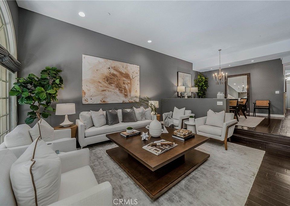 Stunning south of the boulevard townhouse is ideally situated in Sherman Oaks on a most desired block between Stansbury and Hazeltine Ave. One of only eight units, this building is renowned for its beautifully mature landscaping and common areas, three-car parking spaces with direct access, both rooftop and main-floor entertaining patios, as well as its privacy and security. Enter the home’s formal foyer through transom-windowed French doors, leading to a large and dramatic Great Room concept living and dining area, all with gorgeous dark, rich hardwood floors, a vaulted ceiling, floor-to-ceiling custom cabinetry, and two palladium-style windows set over a pair of French doors that open to a large entertaining patio for BBQs and dining. The oversized kitchen features a center island, an eat-in dining area, stainless steel appliances, and ample storage, counter, and pantry space. A guest powder room serves this main floor. Upstairs are two spacious bedrooms and a light and bright alcove, perfect for an office/study, or library/TV room. The voluminous primary suite is flooded with natural light and features vaulted ceilings, a sitting area, a walk-in closet, and a private balcony with French doors overlooking a privacy hedge. The suite features a walk-in closet and a spacious, skylit bathroom with a spa tub, a separate shower stall with seating, and dual sinks. A second bedroom, complete with a walk-in closet and a full bath, completes the level. Don’t miss the hallway in-cabinet laundry chute to the laundry room on the garage level! The rooftop deck with wonderful mountain and neighborhood views is an ideal “getaway” spot to relax from city life. The townhome is located right around the corner from Jinky’s and Bacari restaurants and Ralphs Supermarket on Ventura Blvd., along with many popular restaurants, bars, and shopping options, not to mention quick access to the 101 and multiple canyon blvds to the westside.