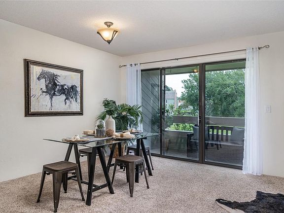 Adorable condo across the street from Cherry Creek State Park w/the best location in Appletree. Open concept living w/warm natural sunlight in every room. Cute kitchen with new stainless steel appliances and extra seating at the breakfast bar. Roomy dining area overlooking the deck and green space. Cozy living room with wood burning fireplace. Large bedroom with walk-in closet and mountain view. Updated full bath w/adjacent linen closet. Separate laundry room with washer and dryer included. Large private deck overlooking open space. New furnace in 2016. Lots of storage/closet space. Easy access to light rail and highways. Own for less than rent!