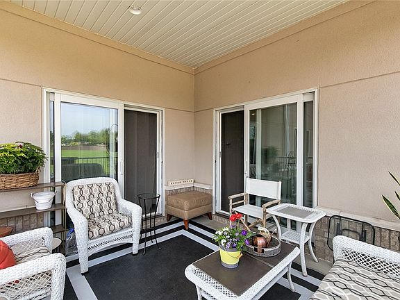 This charming and inviting 2nd floor condo offers a perfect blend of comfort and convenience, overlooking a serene green space that provides a peaceful retreat from the hustle and bustle of life. The spacious floor plan is thoughtfully designed (it is one of the larger floor plans in the building). Two bedrooms and two bathrooms: both bedrooms offer ample closet space while the two bathrooms are nicely updated (primary bedroom has full bath with double vanity; hall bath is 3/4). Full-size washer and dryer are located in a closet in the hall bathroom. The updated kitchen, with stainless steel appliances and a large, beautiful granite-topped island, is the hub of the home - perfect for cooking, entertaining, and everyday living. You'll appreciate the abundance of natural light, while the gas fireplace serves as the focal point of the living room. The covered deck adds delightful outdoor living space. The condo is part of a meticulously cared-for building and has a secure entrance, ensuring a well-kept and safe environment. One underground space is included along with a locked storage space. An elevator provides convenience from the car to the unit. There is plenty of parking near the main entrance for any guests. Dues include trash and water, lawn, snow, exterior maintenance and a portion of the monthly dues is set aside in a reserve fund.