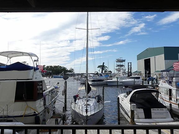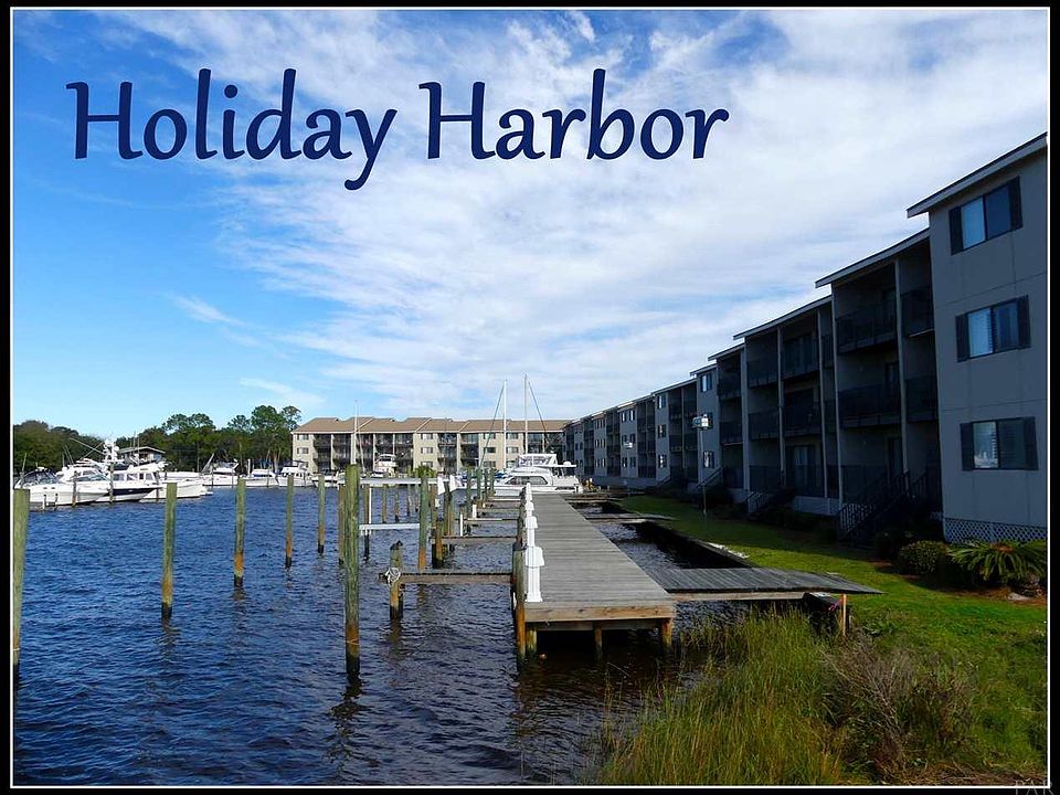 Fantastic price on this SPACIOUS 2 bedroom condo with DIRECT WATER VIEWS. Living area and Master bedroom both open to a balcony area and overlook the marina. Comes partially furnished. Freshly painted and no carpet! GORGEOUS SUNSET views and conveniently located close to Pensacola Naval Air Station, Johnson Beach National Seashore, world class golf and fishing! Short walk to Sunset Grill for great casual dining. Holiday Harbor condo is a waterfront complex and is adjacent to Holiday Harbor Marina. Boat slips available through marina. Lowest priced 2/2 on the key as of listing date. DON'T MISS THIS DEAL! All measurements and information are deemed reliable but not guaranteed. Square footage from tax records.