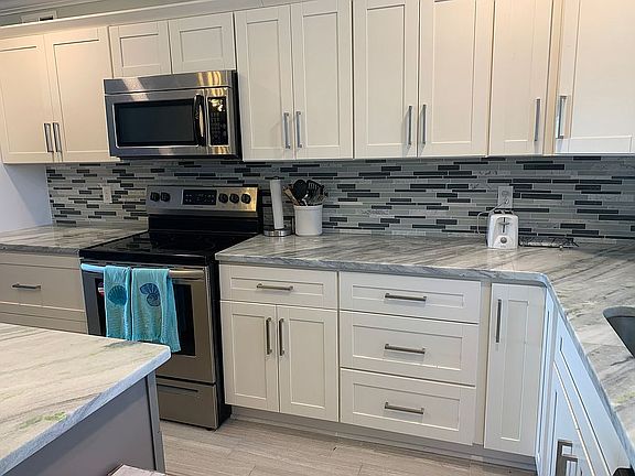 Two bedroom, two bath waterfront Condominium located right on Marina. This second floor unit has a fireplace and great views of the sunset over the Intracoastal Waterway. Unit is completely updated and move in ready! Brand new renovated kitchen with shaker style cabinets, oversized drawers for pots and pans, eat in island with ample storage and outlets on both ends, deep open sink with disposal, custom backsplash, imported granite countertops, and stainless appliances. New tile floors, bath vanities, tiled master shower, brand new balcony, and more. Stone tiled fireplace with natural wood floating mantle, wired for electricity and cable for hanging TV without unsightly cords. Master bedroom has two closets, one walk in and one with bi-fold doors. Ample parking, community pool, and bike storage. Water, Sewer and trash is included in the HOA fee of $350 monthly, one of the lowest HOA fees on the Key! Pet friendly community with no short term renters to disturb owners or long term renters. We welcome agents to bring clients and are willing to negotiate a commission with an approved buyer. PLEASE DO NOT CALL TO SOLICIT YOUR COMPANY!!!!