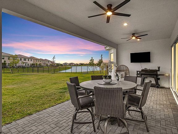 WELCOME HOME to the award-winning Westlake community, exceptional taste, unmatched recreation, vibrant town center, and a well appointed 3 bedroom, 2 bath, 2 car garage home that is resting on a premium waterfront lot and boasting upgrades galore, hurricane impact windows and doors, expansive green space and this beauty is better than brand new! ENTERING you will discover that this gem is resting on a oversized fully fence lot with a covered entry that brings you inside where you are greeted by soaring 15' ceiling, over $50K in upgrades, 8' doors, high-end flat wall finish, quartz countertops throughout, bright open floor plan, beautiful color palette, wood plank tile throughout, spectacular kitchen that over looks the vast green space and featuring quartz countertops, expansive (CLICK) island with bar, pantry, Whirlpool Gold stainless steel appliance package, white 42" shaker cabinets with gold hardware and gold glass pendants. PASSING THROUGH you will find the master suite is overlooking the lake and features a linen closet, his and hers sinks, private water closet and spacious walk-in closet. And 10' volume ceilings, multiple 11' tray ceilings, upgraded black door hardware throughout, Memoir petal black tile floor in second bath, spacious laundry room with cabinetry, Whirlpool Gold washer and dryer and folding counter, wooden blinds throughout, 50 amp plug for electric vehicle or generator, whole home surge protection, tank less gas water heater, epoxy garage floor and a design that is exquisite. STEPPING OUTSIDE brings you to the 26' x 12' lanai, green space galore, a lake breeze, room to build a grand pool, brick paver driveway, sidewalk and patios, gutters and a fire hydrant directly across the street. Simply, a perfect space for quiet time, family gatherings, entertaining and enjoying Florida living at its best. COMMUNITY & WORLD CLASS AMENITIES The City of Westlake is blissfully beautiful yet vibrantly social and will make every day an adventure. Entering the city brings you into a community filled with miles of scenic pedestrian and golf cart pathways, acres of shimmering lakes, lush tropical landscaping, fitness trails and richly appointed amenities. Whatever your favorite style of recreation, you're going to enjoy resident exclusive access to the epic resort-style amenities at Westlake Adventure Park, the 15-acre amenity center with endless fun for all ages. From the tennis and basketball courts, lap and lagoon pools with tower water slide and soft-surface splash pad, BMX pump park, bocce ball courts, dog park, Snack Shack, Scoops Ice Cream, the lodge multi-purpose building and event space, playground, outdoor concert pavilion and the Westlake Adventure Park also features expansive lawns, spaces for parties and celebrations of every kind, and much more! EDUCATION Westlake is located in Palm Beach County, home to one of Florida's best public school systems and some of the country's most rigorous public magnet and private schools in the nation as recognized by U.S. New & World Report, the New York Times and sitting just a few miles away from the Palm Beach State College. LOCATION LOCATION LOCATION superbly located and just minutes to everything one could possibly desire; shopping and dining just around the corner, world-class equestrian venues and facilities, convenient travel to Florida's Turnpike, I-95 and Palm Beach International Airport, world class theater, golf and beaches, fishing and boating, arts and culture, entertainment, business and economic development, green living and countless activities for all ages, Simply, the best of everything and your perfect Florida retreat.