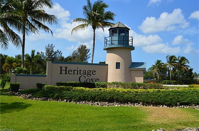 Here it is: TWO Bedrooms PLUS a Den! RARE find! Ground Floor END Condo Unit is available in Heritage Cove 55+ Community and it is TURNKEY! This condo has been Exquisitely and Tastefully Decorated and waiting for You and your luggage. This END Unit includes Extra Windows for Perfect Natural Sunlight and Views of the Lake. Relax on the Lanai and Listen/Watch the Breathtaking Lake Fountain. The Fountain can be seen from the Lovely Master Bedroom complete with TWO walk-in Closets and Private Master Bath. The Guest Bedroom is Spacious and the Guest Bathroom is Impeccably Decorated. There is a Laundry Room with Washer/Dryer in the Residence. The A/C and Water Heater are newer. There are Hurricane Shutters to protect your home from storms. The Quality Furnishings from Coaches, TVs, Bedroom Sets all the way to the silverware are INCLUDED in this Sale! Heritage Cove 55+ Community is Fabulous! You will love the Community Center, Huge Pool/Spa, Many Tennis Courts, Social Events and Exercise Room. The Community has LOW Fees, a Gated Entrance and it is close to EVERYTHING! You name it Airport, Shopping, Restaurants, and Beaches! Buy the CONDO!