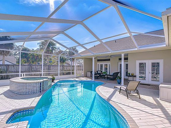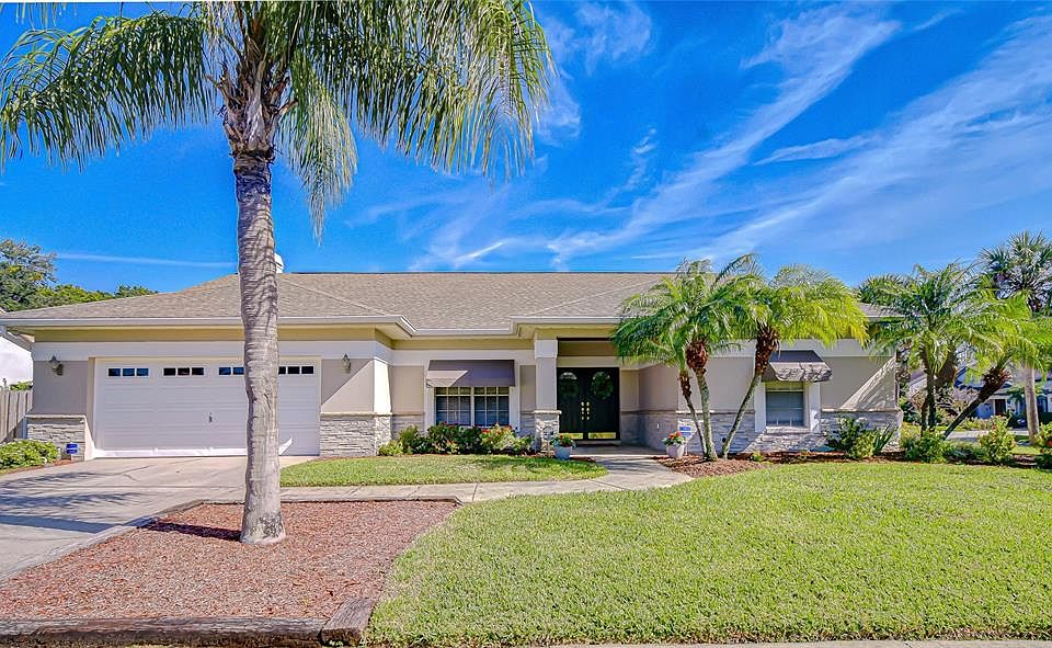 Under contract-accepting backup offers. Welcome to the highly sought-after Stonegate community in Carrollwood Village! This beautifully maintained single-family home offers 4 bedrooms, 2 bathrooms, and 2,489 sq. ft. of well-designed living space. Situated on a fenced corner lot, this residence features an inviting open floor plan that blends comfort and functionality. At the heart of the home is the spacious updated kitchen, complete with wood cabinetry, stone countertops, stainless steel appliances, and a breakfast bar. The dinette area with French doors that open directly to the pool, along with the formal dining room that opens to the kitchen. The kitchen flows seamlessly into the large family room, highlighted by a brick wood-burning fireplace, perfect for cozy gatherings. Step outside to your private outdoor oasis where a screen-enclosed saltwater pool and spa await—ideal for relaxing or entertaining. The master suite offers its own access to the pool through French doors and features a walk-in closet and an en-suite bath with vanity, garden tub, and walk-in shower. Three additional bedrooms – which one could make a great office, a full bath, and the laundry room are conveniently located on the opposite side of the home, providing excellent separation and privacy. Ceramic tile and wood flooring throughout. Additional features include roof installed with hurricane straps, full-yard irrigation system, and pride of ownership throughout. Residents enjoy access to parks, playgrounds, tennis and racquetball courts, scenic walking paths. Right down the street is Hillsborough County's Carrollwood Village Park the amenities include a skatepark, dog park, playground, splash pad, and more. Conveniently located to all major roadways, Tampa International Airport and mall, all sports venues, downtown Tampa, restaurants, medical and so much more. This meticulously kept home is ready for its next chapter in one of Carrollwood’s most desirable communities. Must see to appreciate.