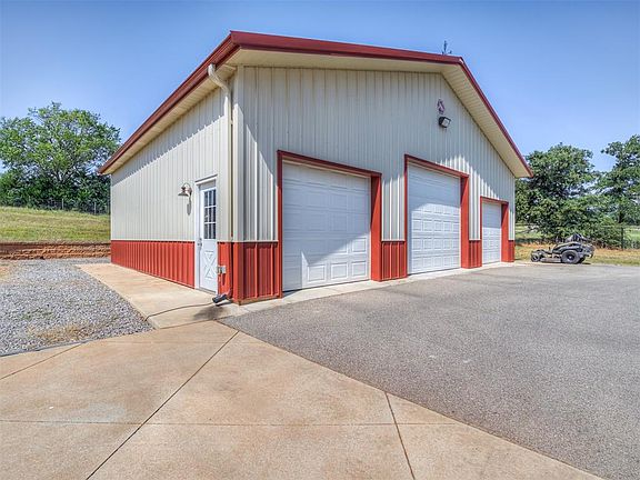 This high-quality ICF (insulated concrete form) custom-built home on a 5-acre lot is energy-efficient and tornado-resistant! The home is on a whole-house generator so you never have to fear power outages. New updates include a water softener system in June 2023, 1st HVAC new June 2023 - 2nd HVAC installed in March 2022 plus 8-inch spray foam in the attic, fresh paint in the laundry room, and bonus room. 1000-gallon propane tank, handicap-accessible doorways. 4 spacious bedrooms (All bedrooms have full bath access) 3 full baths, 2 half baths, a kitchen, 2 living areas, 2 dining rooms, a bonus room, and a home theater! The master bath has a soaker tub, side-by-side shower heads, an extensive vanity for all your storage needs, a large walk-in closet that acts as a panic-safe room, and private access to the back patio. The two main BRs share a full bath and are generous in size. Spacious family room with wood-burning fireplace! The Exquisite chef's kitchen in the heart of the home will ignite your inner chef with the center island 5 burner range, double oven, custom cabinetry, all stainless steel appliances, beautiful granite countertops with extra bar seating, and an additional breakfast area. There is a pantry in the kitchen for additional storage. The spacious Bonus room upstairs has access to a half bath and can be used in various ways. Gym, office, playroom, or could be used as a 5th BR. This home also home a well-organized theater room upstairs, a great space for entertaining family and friends! There is tons of parking with the oversized 3-car garage PLUS the 35x42 shop building with 4 lift doors and a 9000-lb car lift perfect for storing all your favorite toys! RV hookups on the property. Black steel fencing with a privacy gate. HOA PAID THROUGH 2030! Easy access to I-40 & I-240, Tinker AFB, Norman, Moore, and Oklahoma City. Sellers are currently in the process of moving to Colorado. The home will be vacant end of January. Make this your dream home today!