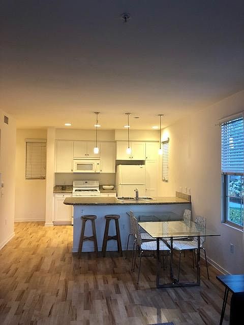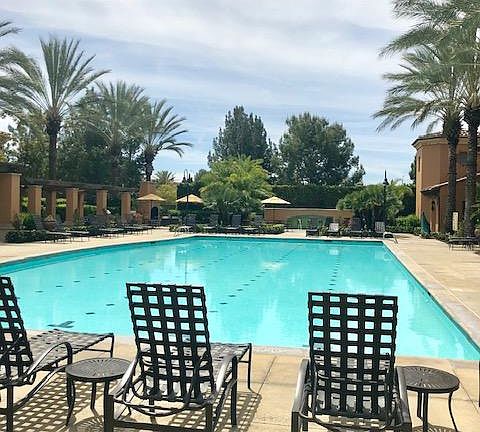 This beautiful apartment has a pool view, hardwood floors throughout, marble countertops in the kitchen and bath, pendant lighting and an in-home full size washer and dryer. The apartment also comes with a 1 car garage. The apartment is on the first floor. Please note, pictures are shown with furniture, however this apartment does not come furnished. This picturesque community offers the following luxurious amenities: - 2 salt water pools and 2 oversized spas - Fitness center with all new equipment and pool view - Clubhouse with fireplace and full kitchen - Lush landscaping with furnished courtyards - Pet friendly, with an additional deposit - Across the street from restaurants and shops at Woodbury Town Center Note: the last photo shown is a model unit and looks very similar to the actual unit available. Credit and employment check through Irvine Company. Please call or text for info or a tour:
