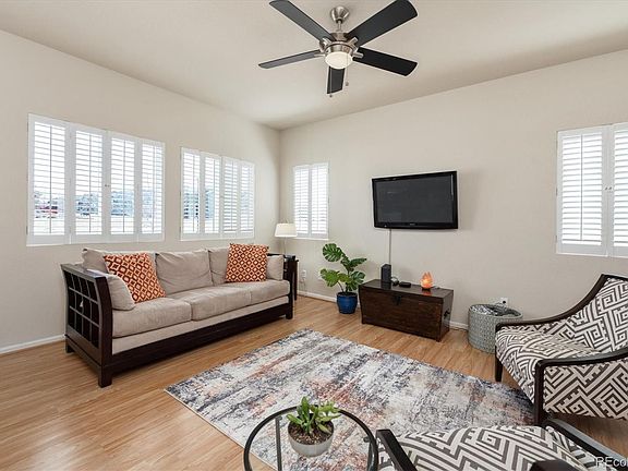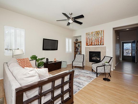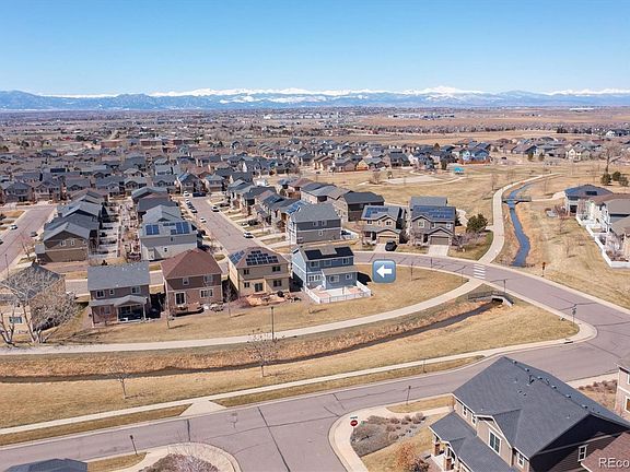 Beautifully maintained patio home on a large corner lot, in desirable Fallbrook Farms. Located on a quiet street & backing up to green space, with incredible mountain views from the front porch and second floor (WOW!). Step inside to the welcoming entry that leads into the open floor plan on the main level. Comfy and sun filled living room with gas fireplace. Plantation shutters and fresh paint throughout first floor. Large and bright kitchen/dining area with lots of counter space (granite), custom backsplash, cabinetry with crown molding, pantry & built-in wine rack w/storage. Back door at dining area takes you to an incredible patio & fenced-in backyard. Perfect for entertaining, family gatherings or just hanging out, enjoying warm, peaceful evenings. Walk upstairs to an amazing view of the mountains. Primary bedroom suite with 5-piece bathroom & walk-in closet. Convenient laundry room with washer/dryer included. Two more bedrooms and full bathroom w/dual sink vanity complete the second level. BRAND NEW carpet with upgraded padding on stairs, hallway & bedrooms. Finished basement with 4th bedroom, bonus room & 3/4 bathroom. Solar Panels are paid for, owned and transferrable, so you will immediately save money on utility bills! Many recent updates throughout home, including exterior paint in 2020. HOA maintains all of the grass surrounding the home. No need for a lawn mower! Enjoy the walking/biking trails, open space, large park & playground right out your door. Walking paths lead directly to the Prairie Hills Elementary & Rocky Top Middle School. Fallbrook Farms is just a short drive to Orchard Town Center, grocery, retail, restaurants, schools and other great amenities. **NOTE** Table and chairs in kitchen are included in sale. The table is versatile/movable and can be used as a kitchen island instead of a table!!**