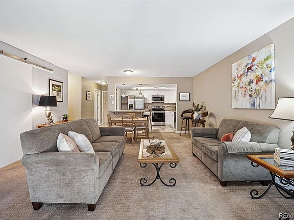 Find your ideal haven in the vibrant 55+ community of Heather Gardens! This charming ground-floor unit, with 2 spacious bedrooms & 2 baths, tastefully blends modern style and comfort. A shared lobby will greet you upon entering the building. Inside the unit, you'll find an inviting interior showcasing an updated kitchen and bathrooms. Perfect for gathering or entertaining, you'll love the seamlessly flowing living & dining room paired with sliding doors to the private tree lined lanai! The kitchen has stainless steel appliances, granite counters, ample cabinetry, stylish tile backsplash, and a breakfast bar. The primary bedroom features an ensuite with two closets, and the secondary bedroom includes additional lanai access. Laundry room comes complete with a washer, dryer and storage area. For added convenience, this gem comes with an assigned garage space just under the building, accessible from the elevator down the hall. Enjoy ample room for all your hobby items in the secure storage locker, located on the first floor. This vibrant community of Heather Gardens offers a wide range of amenities and lifestyle programs, such as a 9-hole golf course, golf simulator to perfect your swing, fitness center, indoor and outdoor pools, and community gardens! Enjoy the highly rated on-site restaurant and bar, featuring live music, dancing, Sunday brunch, and daily specials. For the seasoned adventurer, enjoy convenient RV storage on site. Continue learning with many clubs, arts and crafts room, wood shop, and library. From photography to pickle ball, tennis to theater — whatever your passion, you're sure to find kindred spirits in this well-maintained community that is conveniently located near the Iliff Light Rail Station and the Cherry Creek Reservoir. Come embrace an active, carefree lifestyle.